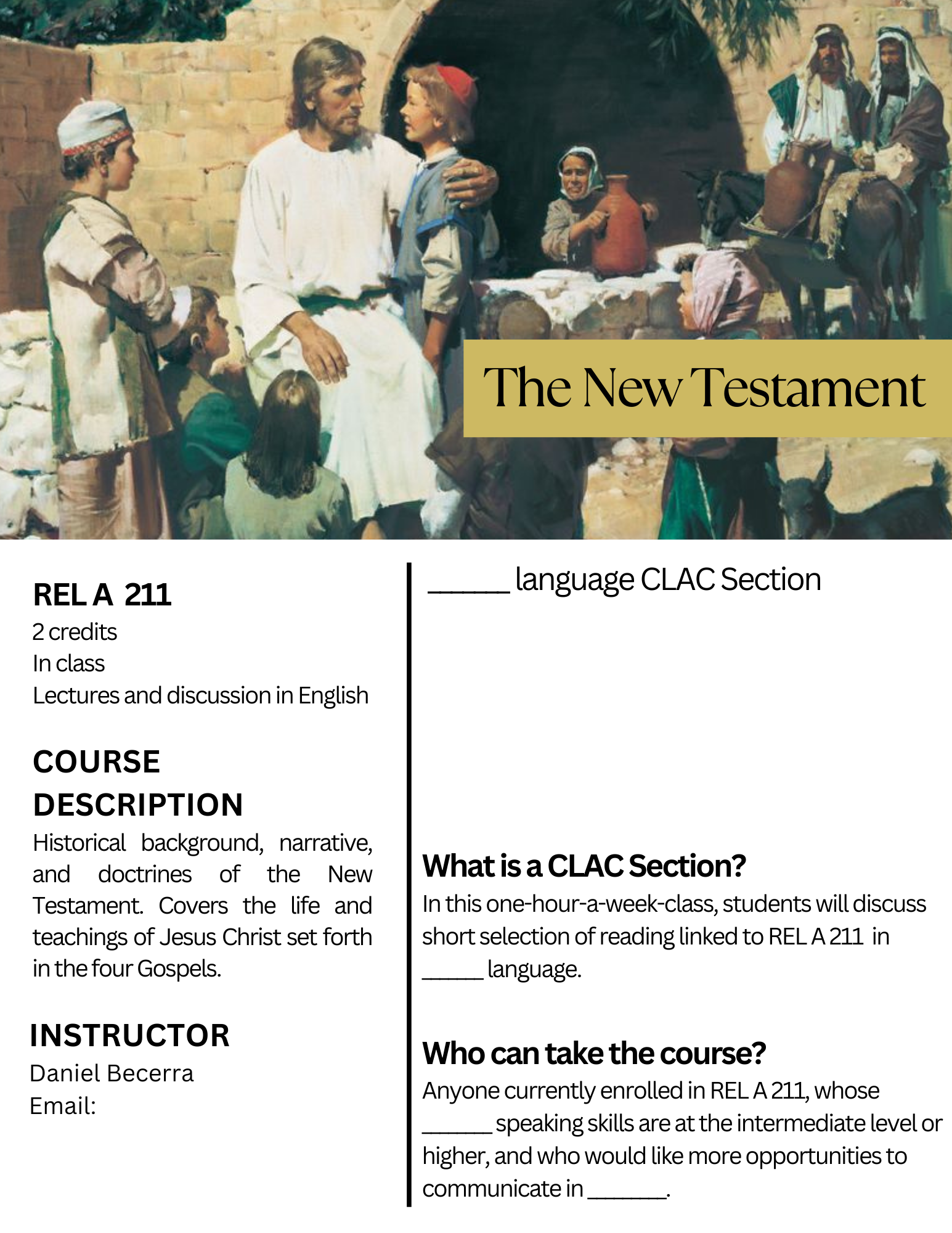 CLAC allows you to pair your courses with discussions in a variety of world languages. Apply your proficiency in a second language to academic content in fields such as Political Science, History, Religion, Anthropology, and much more.